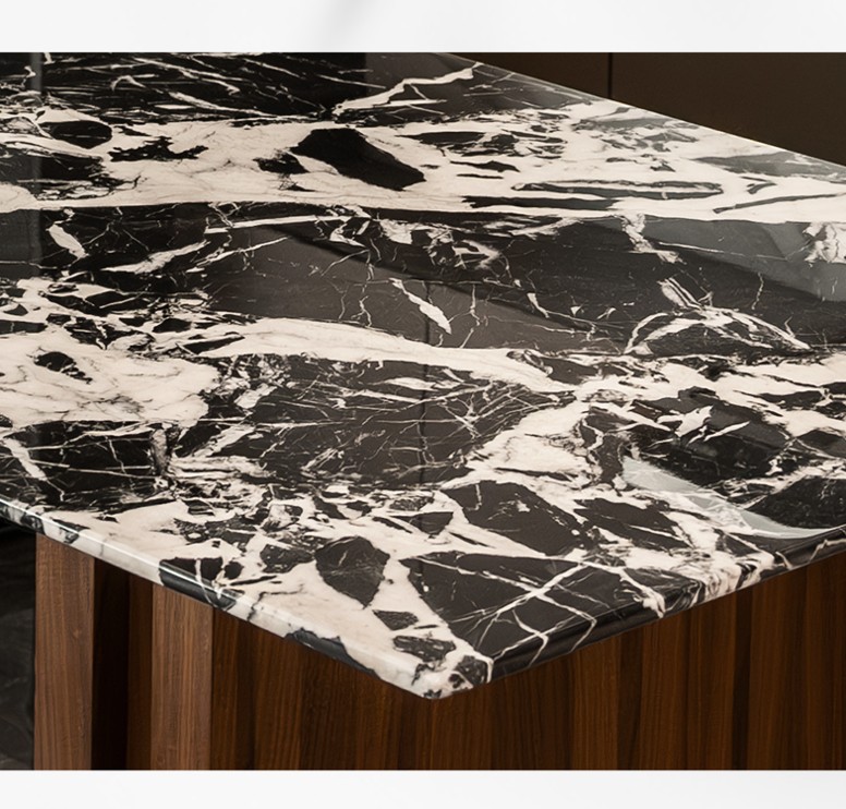 同时可选配宝格丽黑大理石桌面。黑底搭配白色纹路的天然石材,被形容为具有艺术画作般的视觉张力。官方说明,大理石纹理为天然生成,每张纹路都不同,因此成品也具有独特性。