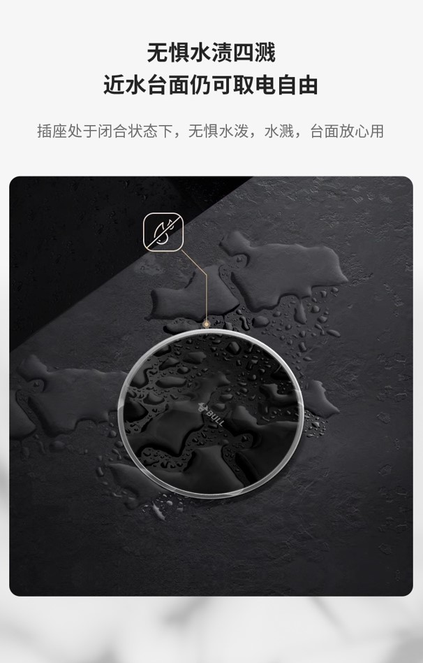 此外,插座在闭合状态下具备防水溅能力,即使靠近水区使用也更安心。