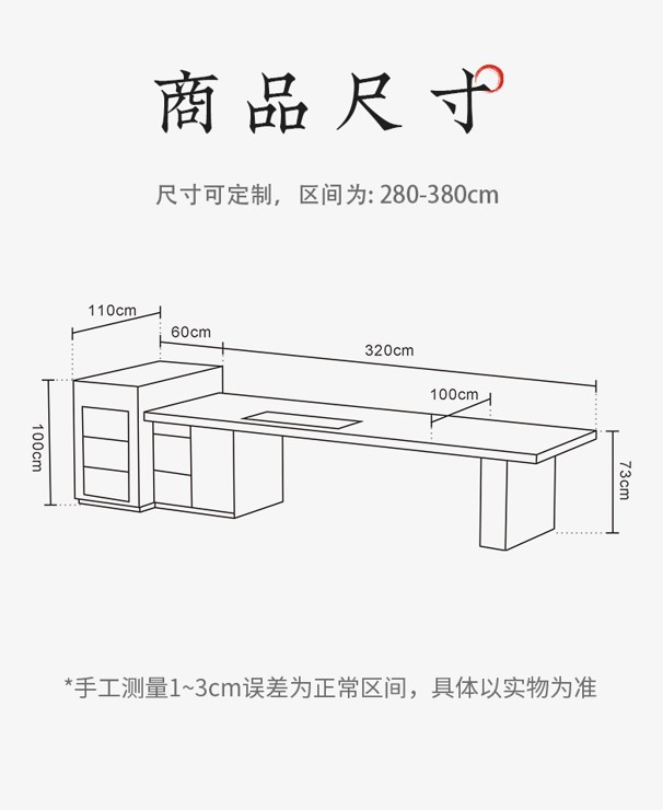 产品(无界茶桌RD1-037)支持280–380cm区间尺寸定制,适合大型茶室或会客空间。品牌同时提供配套茶凳与茶椅,便于用户打造统一风格的完整茶席环境。