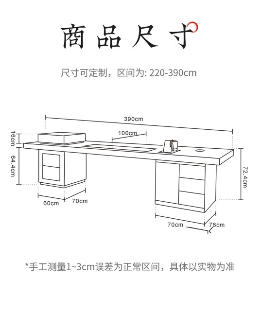 “道茶桌”(无界茶桌RD1-052)支持220–390cm区间尺寸定制,适合独立茶室、会客厅或大型公共茶空间使用。品牌同时提供配套茶凳与茶椅,便于整体风格统一。