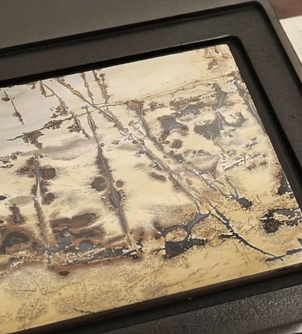 这类茶盘主打国画石与乌金石两种材质。国画石形成于约4.7亿年前深海沉积环境,含多种矿物元素,自然生成山水或水墨般纹理,每一块图案皆不同,具有“稀石孤品”的收藏属性。乌金石则以乌黑色泽与金属晶闪质感著称,结构稳定、硬度高,遇冷遇热不变形,也不易开裂或褪色,适合长期使用。