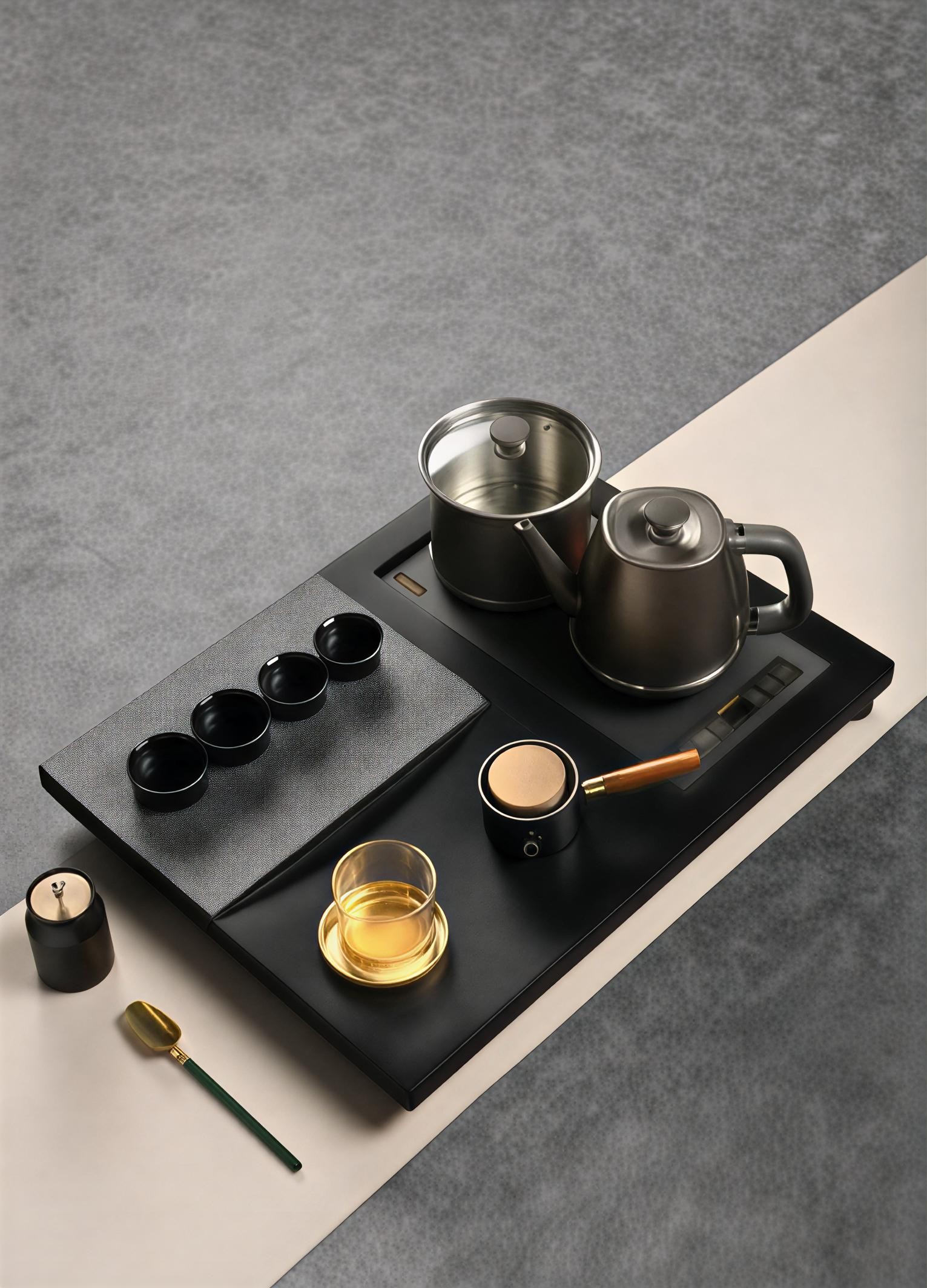 这款套装搭载全自动烧水壶与全自动电磁炉系统,支持智能触碰与快速烧水,一键即可完成底部上水。对于频繁泡茶或需要接待客户的用户来说,减少提壶添水的步骤,无疑能让节奏更从容。