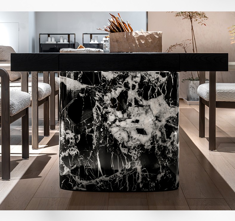 黑底穿插白纹,是它最醒目的标志。纹理对比明显,自带视觉张力,很容易成为空间焦点。
