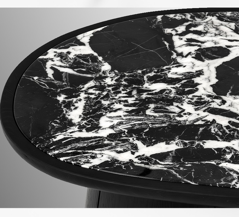 材质补充: 黑色系大理石通常矿物含量高、纹路清晰,常用于高端家具与建筑装饰。