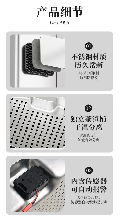 在当下的茶空间配置中,茶桌之外的配件也逐渐被重视。其中,兼顾耐用材质与智能功能的不锈钢智能茶水桶,正成为不少用户升级茶区时的参考选项。